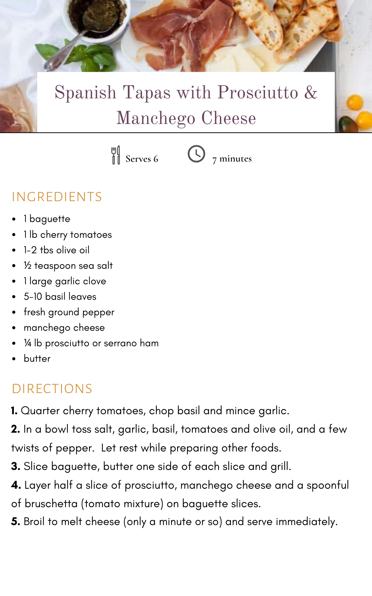Spanish Tapas with Prosciutto & Manchego Cheese