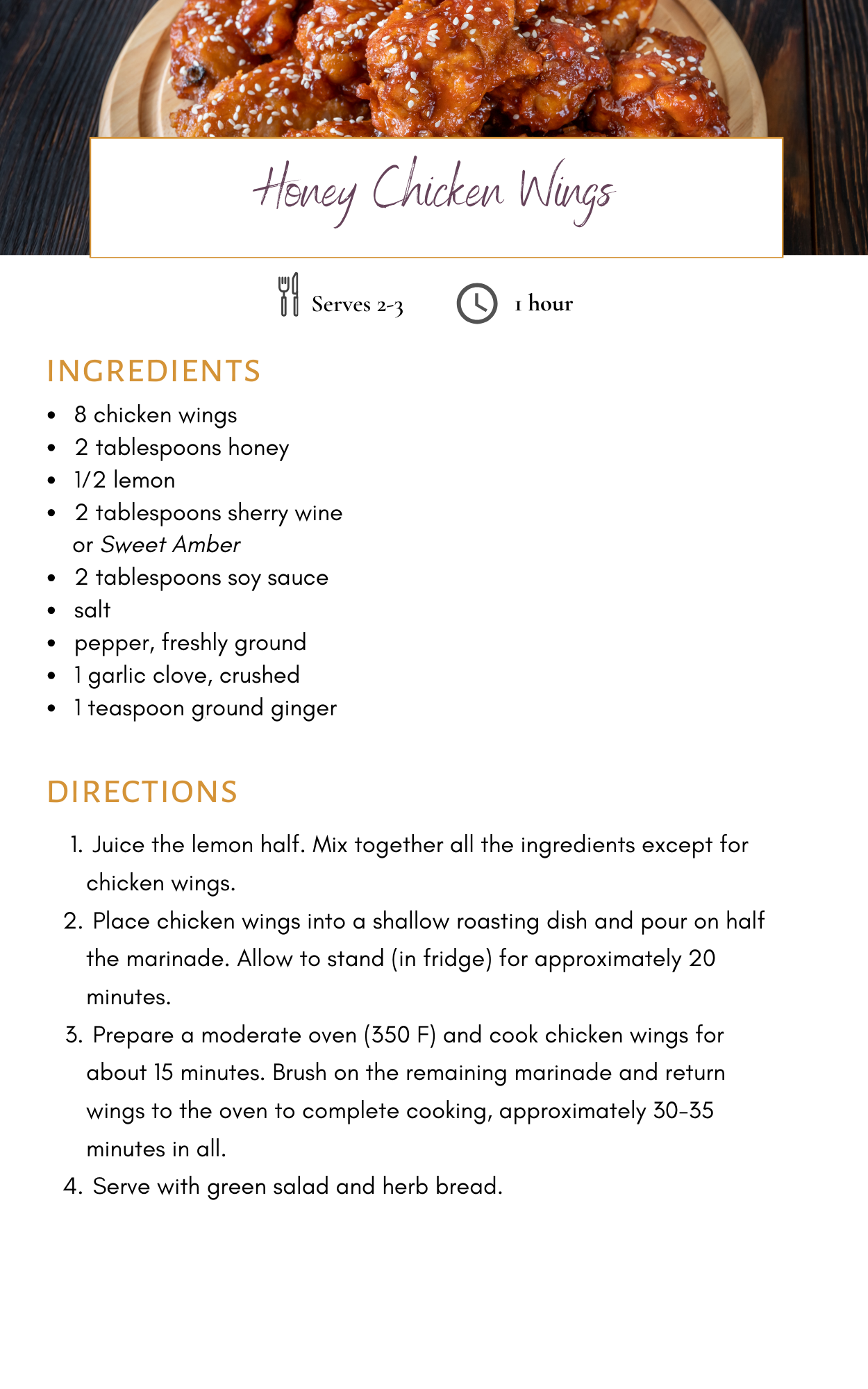 Honey Chicken Wings