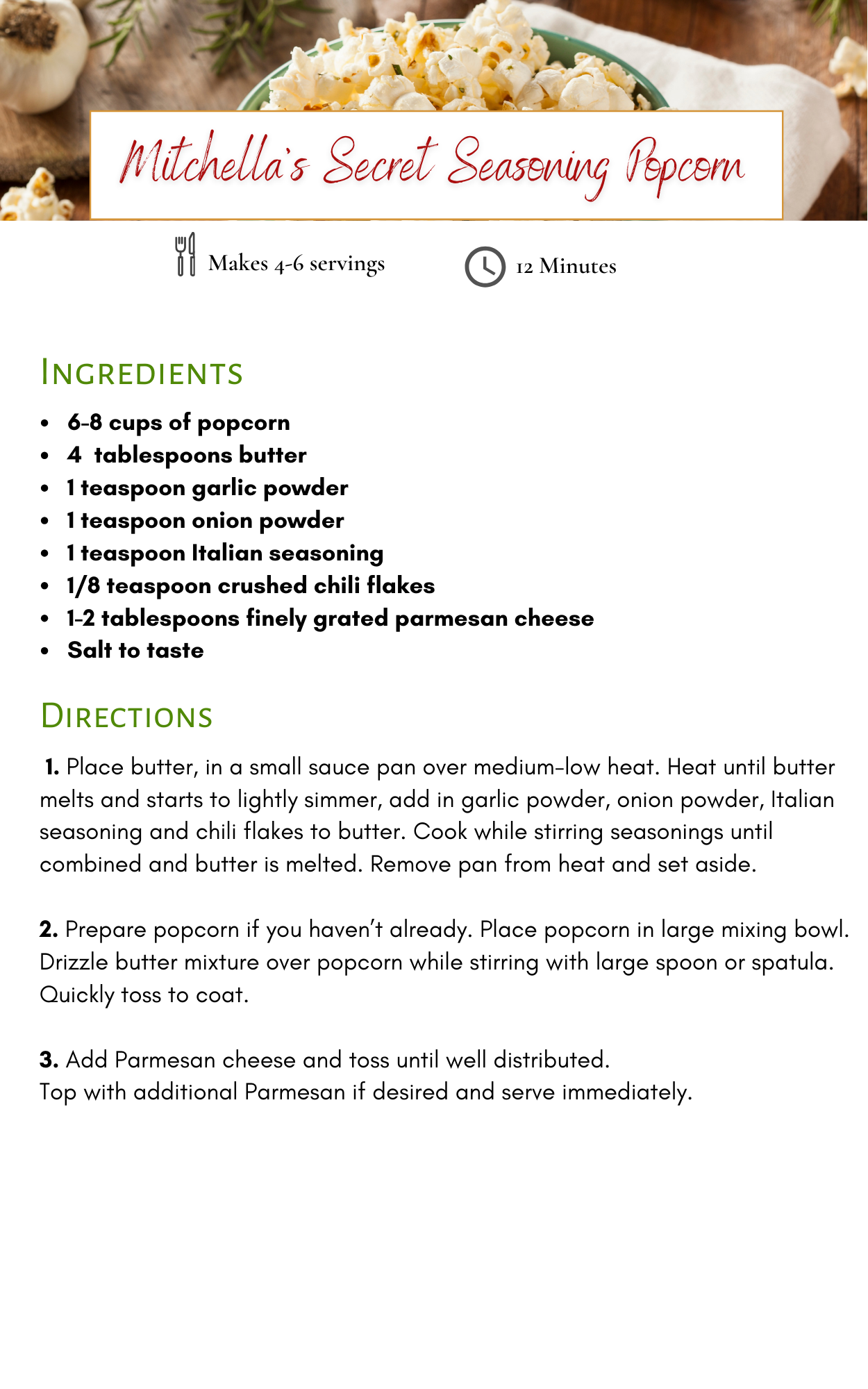 Mitchella's Secret Seasoning Popcorn